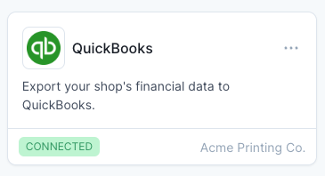 You can enable Quickbooks sync by going to the integrations settings page inside of PrintTools (Settings โ Integrations). Simply connect your Quickbooks account by clicking the connect button and sync will automatically run. Once connected, all your past and future orders will sync automatically to Quickbooks and your page should look like this: