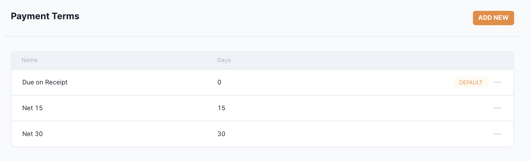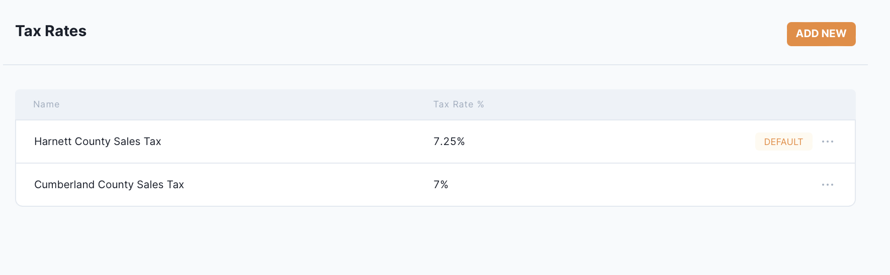 To set a tax rate as the default, click the “…” next to the tax rate and select “Set as Default.”